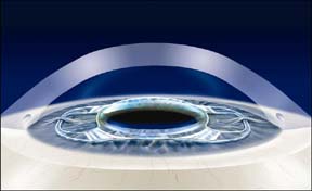 faltbar und kann durch einen nur 3.0 mm feinen Einschnitt amk Rande der Hornhaut